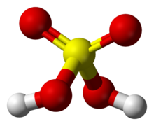 硫酸(化學式:H2SO4),硫的重要的含氧酸。無水硫酸為無色油狀液體,10.36℃時結晶,通常使用的是它的各種不同濃度的水溶液,用塔式法和接觸法制取。前者所得為粗制稀硫酸,質量分數一般在75%左右;后者可得質量分數98.3%的純濃硫酸,沸點338℃,相對密度1.84。